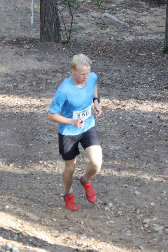 Avasin kisan lähdöstä reippaalla tahdilla, ja kaksi ensimmäistä kilometriä juoksinkin huomattavasti kovempaa kuin huhtikuussa. Tavoitteena oli säilyttää juoksu rentona ja yrittää tehdä tasavauhtinen kahden 7 km kierroksen kisa. Kuitenkin reilun kolmen kilometrin kohdalla eksyin reitiltä. Etsin reittiä noin kilometrin verran, kunnes luovutin etsimisen ja päätin palata takaisin lähtöön ja keskeyttää kisan. Maalialueella kertasin tilannetta kilpailun järjestäjien kanssa ja lopputulema oli se, että joku kilpailun ulkopuolinen taho oli käynyt siirtämässä reittimerkintöjä siten, että ne johtavat väärälle polulle. Todella harmillista, sillä minun lisäkseni myös moni muu eksyi reitiltä ja keskeytti samasta syystä. Täytyy korostaa, että muuten reitti oli jälleen kerran todella hyvin ja selvästi merkitty. Ikinä ei voi kuitenkaan tietää, jos joku muu ulkoilija haluaa nähdä vaivakseen siirtää reittimerkintöjä.